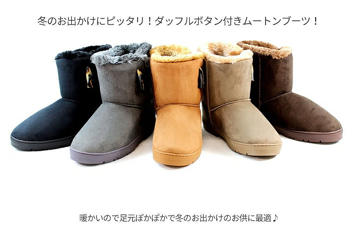 Point2 冬のお出かけにピッタリ!ダッフルボタン付きムートンブーツ! ・靴下やタイツに合わせてカジュアルに履けるフェイクムートンブーツは、足元暖かで冬のお出かけにピッタリ☆