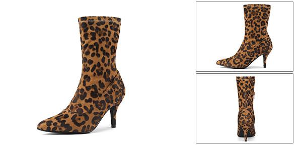 【属性5】ヒールの高さ:8 cm、シャフトの高さ:19 cm【商品説明】オールシーズン活躍するヒョウ柄アンクルブーツの登場です。