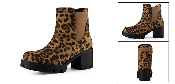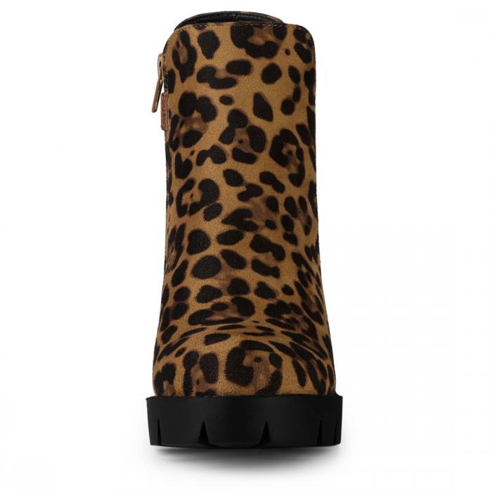 ソウテン アンクルブーツ プラットフォーム チャンキーヒール リベット飾り レディース ヒョウ柄 23.5cm