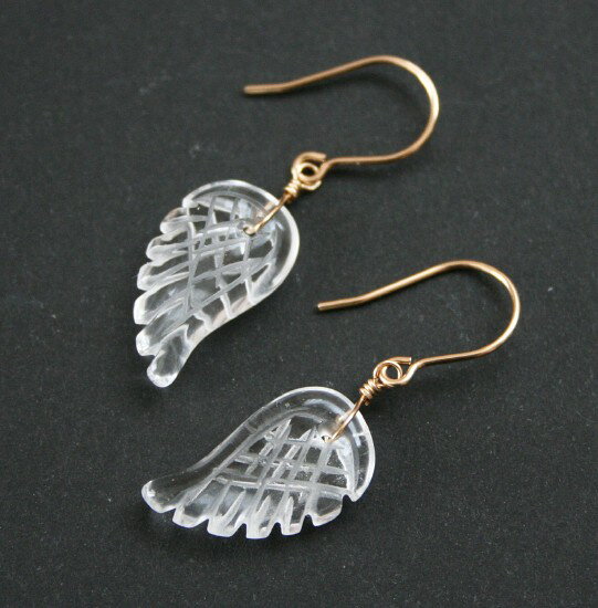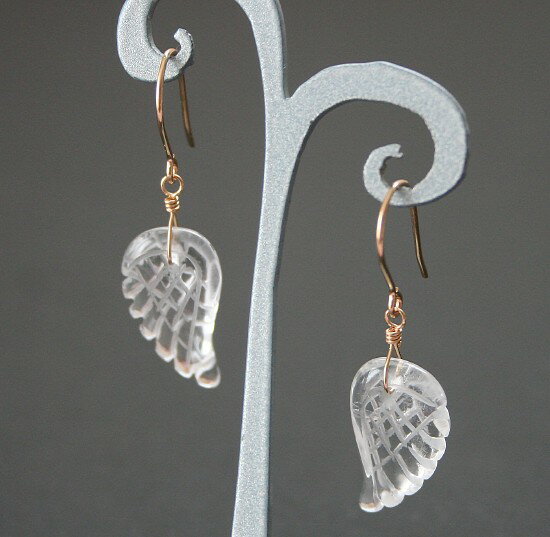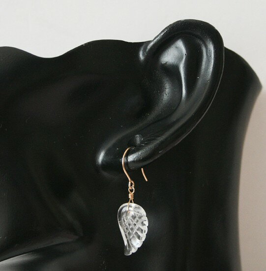【再入荷】クリスタルの一粒ピアス(天使の羽)14KGF・天然石アクセサリー・ゴールドフィルドジュエリー