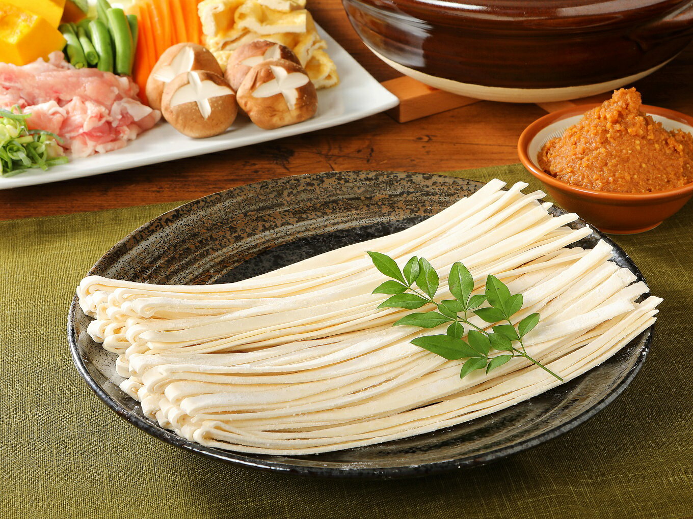 一般のうどんと違い、ほうとうは茹で水を捨てずにそのまま煮込んで食べる料理なので、無添加、無塩は特にこだわりたいところ。