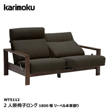 カリモク 2人掛椅子ロング【WT5112 オーク材 ネオスムース・ソフトグレイン本革張り】リクライニング ソファ コンパクト 木肘