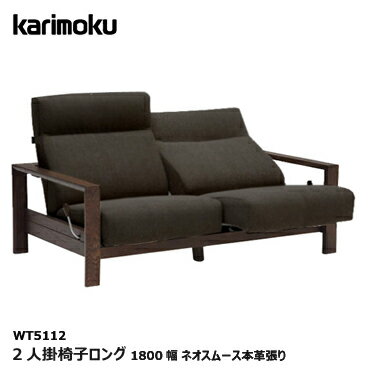 カリモク 2人掛椅子ロング【WT5112/オーク材/ネオスムース・ソフトグレイン本革張り】リクライニング ソファ コンパクト 木肘