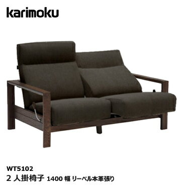 カリモク 2人掛椅子【WT5102 オーク材 リーベル本革張り】リクライニング ソファ コンパクト 木肘
