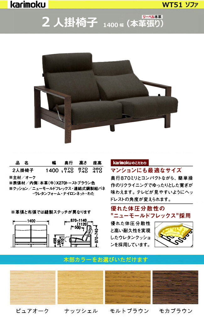 商品仕様 素材・カラー カリモク 2人掛椅子 【WT5102/オーク材/リーベル本革張り】 オーク材 サイズ W1400xD870-1120xH870-740(SH380-410) 重量 備考 関連 カリモク 2人掛椅子 【WT5102/オーク材/リーベル本革張り】リクライニング ソファ コンパクト 木肘 送料 開梱設置送料無料! 納期 納期約3週間 (在庫が切れている場合、遅れることがあります) お急ぎの方は以下【お問い合わせ】より納期の確認をお願いします。