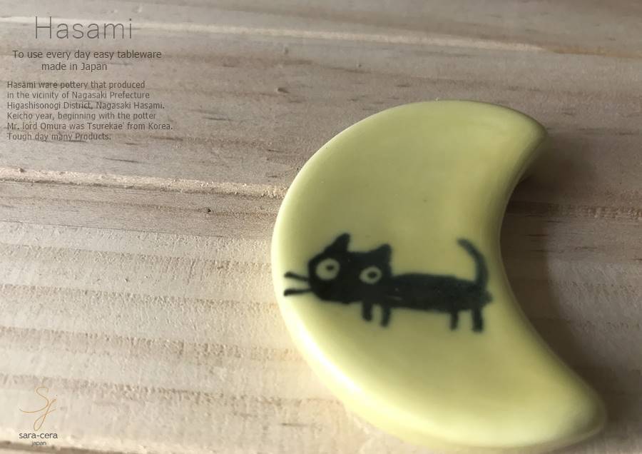 和食器 有田焼 三日月猫 黄 箸置 箸置き 卓上小物 レスト お箸置き 陶器 食器 うつわ おうち ごはん おしゃれ 日本製