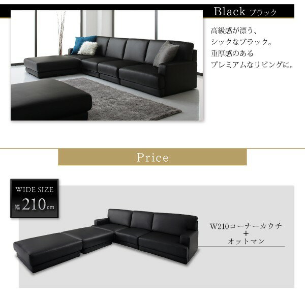 レイアウト自由!家族でリビングを囲める大型モダンデザインコーナーカウチ 【サイズ】W270コーナーカウチ:(約)幅268cm 奥行160cm 高さ66cm(座面高30cm) 【生地】合成皮革 (PVC)【中材】天然木、Sバネ、ウェービングベルト、ウレタンフォーム【生産国】中国 【カラー】ブラック、ホワイトW270コーナーカウチ・・5梱包1.(約)83cm 83cm 66cm・23kg 2.(約)83cm 83cm 66cm・23kg3.(約)83cm 55cm 66cm・15kg 4.(約)83cm 55cm 66cm・15kg5.(約)83cm 83cm 32cm・20kg※1年保証付き※こちらの商品は完成品でのお届けとなります。