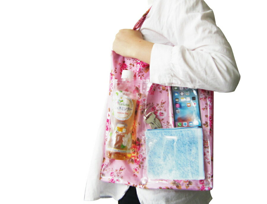 表の透明ポケットは飲み物やタオル メガネなど使用利頻度の高いものを収納します。